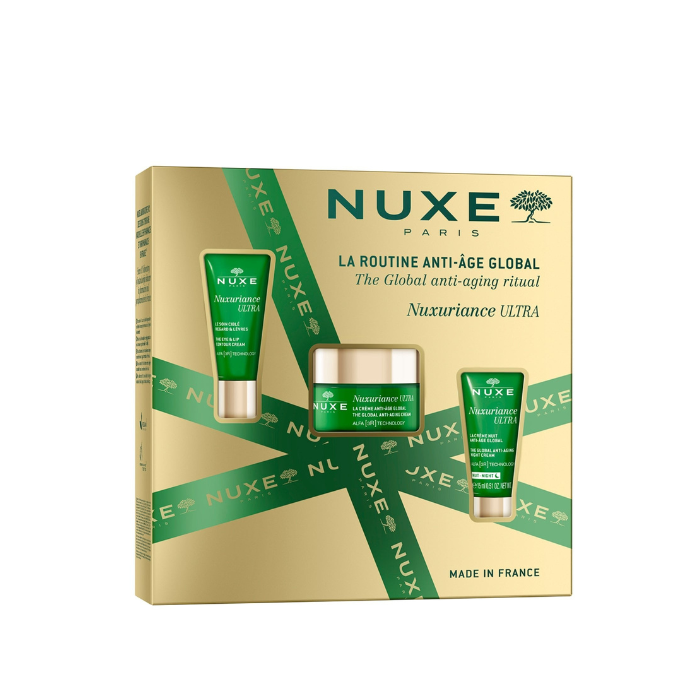 The Nuxuriance Ultra global anti-aging routine more effective than retinol*, thanks to Alfa [3R] Technology**, that helps to [R]evitalise, [R]enewand [R]esurface the skin. The giftset contains :